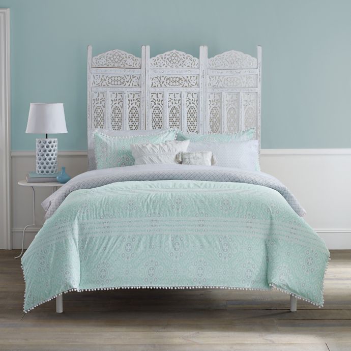 Anthology Moroccan Party Comforter Set In Mint Green White Bed