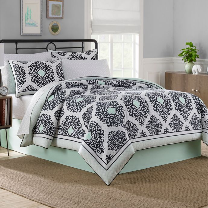 Cooper Reversible Comforter Set In Black White Mint Bed Bath